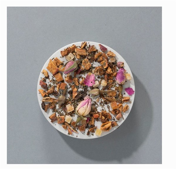 Apple Loves Mint fruktte med hele knopper av nyperose er en fryd for øyet. Mynte-te blandet med søte biter av eple og papaya. Et subtilt hint av roser i blomst med frisk mint i avslutningen.