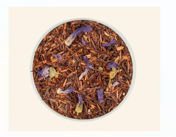Rooibos, blå kornblomster og smak av fersken-krem, aprikos og fløte.